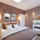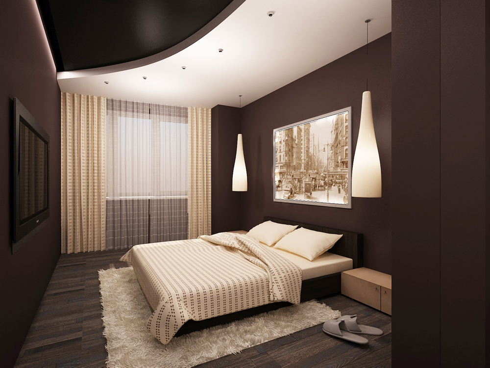 Ein Schlafzimmer in Kaffee-Tönen ist eine stilvolle und "gemütliche" Lösung. In einem solchen Raum herrscht immer eine Atmosphäre von Wärme und Entspannung. Als zusätzliche Farbe können Sie dunkelbraun oder beige verwenden. Grau oder eine seiner Schattierungen passen wunderbar in den Innenraum.