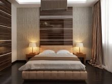Wenn das Schlafzimmer klein ist, ist es besser, helle Holztöne zu wählen. Dies wird sich positiv auf den Raum auswirken. Wenn Sie in bar begrenzt sind, geeignete Möbel mit hochwertigem Holzimitat.