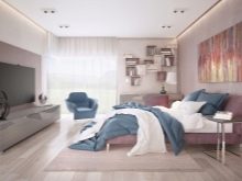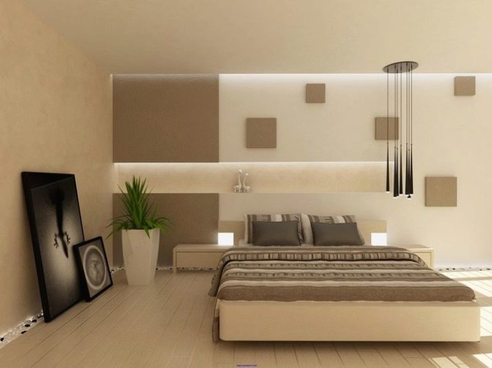 Wenn das Schlafzimmer in sanften Farben gehalten ist, müssen Sie dem Gesamtbild ein paar helle Details hinzufügen. Sie sollten nicht viel sein. Stellen Sie sicher, dass sie nicht zu groß sind.