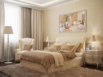 Weiße Polstermöbel sind perfekt für ein Schlafzimmer in warmen Farben. Dies ist eine universelle Farbe, die sich wunderbar mit anderen Farben kombinieren lässt. Eine sehr gute Option - Möbel in sanften Cremetönen.
