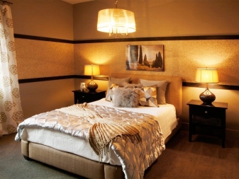 - Für das Schlafzimmer in warmen Farben Leuchten mit vergoldeten Schirmen sind ideal. Goldene Elemente sind perfekt mit warmen Farben kombiniert.