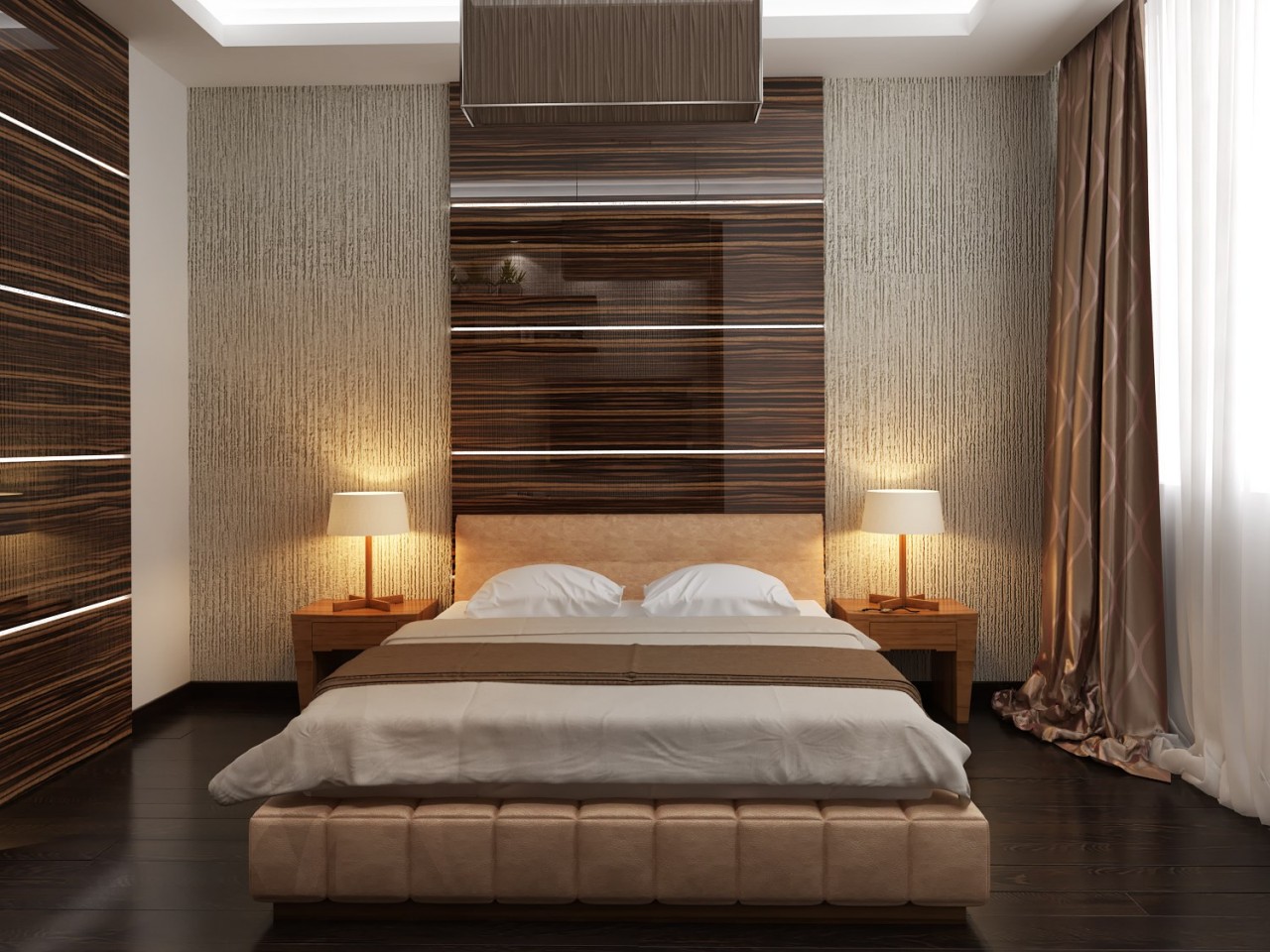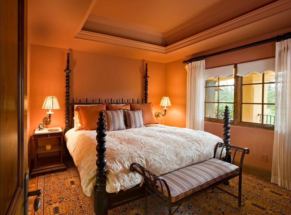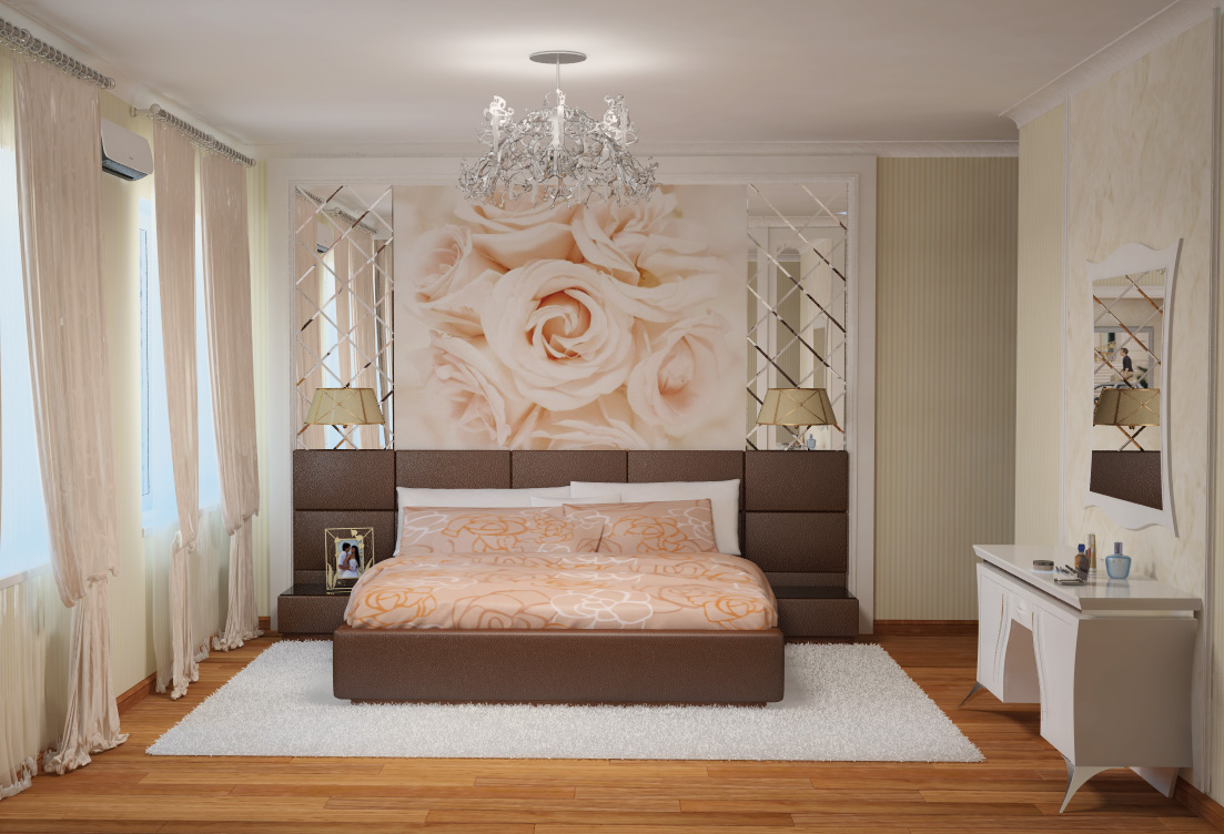 Es ist notwendig, sehr verantwortungsbewusst mit seinem Design umzugehen. Die Atmosphäre wird stark von der Farbpalette beeinflusst. Richtig ausgewählte Farbtöne passen sich für Entspannung, Komfort, Romantik und Ruhe an. Helle und warme Farbtöne erfüllen diese Aufgaben hervorragend. Ein Schlafzimmer in warmen Farben ist ideal.