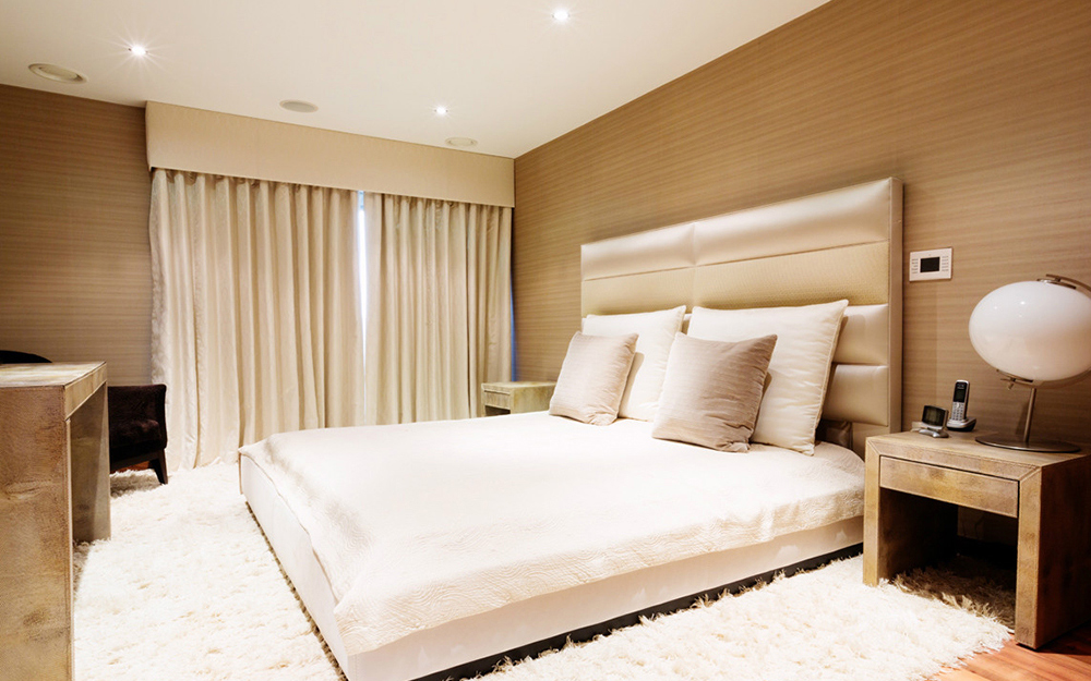 - Cremig Zarte Töne sind ideal für die Dekoration des Schlafzimmers, dessen Hauptaufgabe Ruhe und richtiger Schlaf ist.