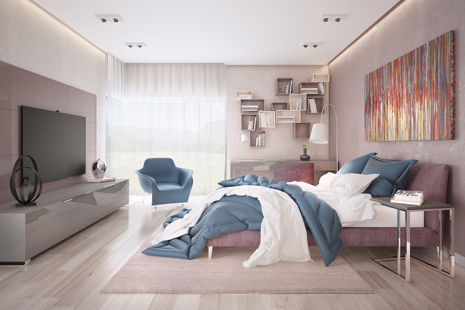 Im Raum herrscht immer eine sanfte und helle Atmosphäre. Solche Farben werden deine Stimmung sofort heben, deine Gedanken positiver machen und Ängste lindern.