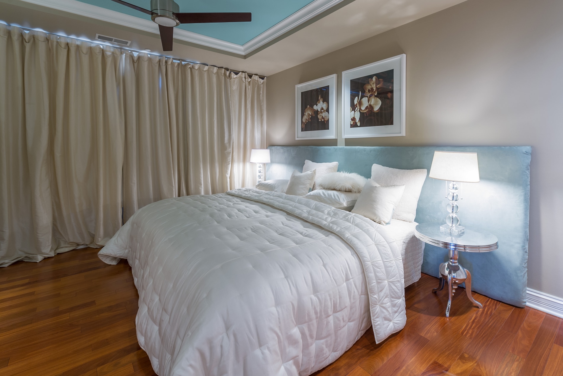 Helle Elemente verdünnen perfekt die Atmosphäre, wenn die Gesamtfarbe des Raumes hell und ruhig ist. Hell dekorierte Gemälde und Fotografien als Dekoration.Diese Elemente eignen sich hervorragend für verschiedene Designstile.