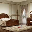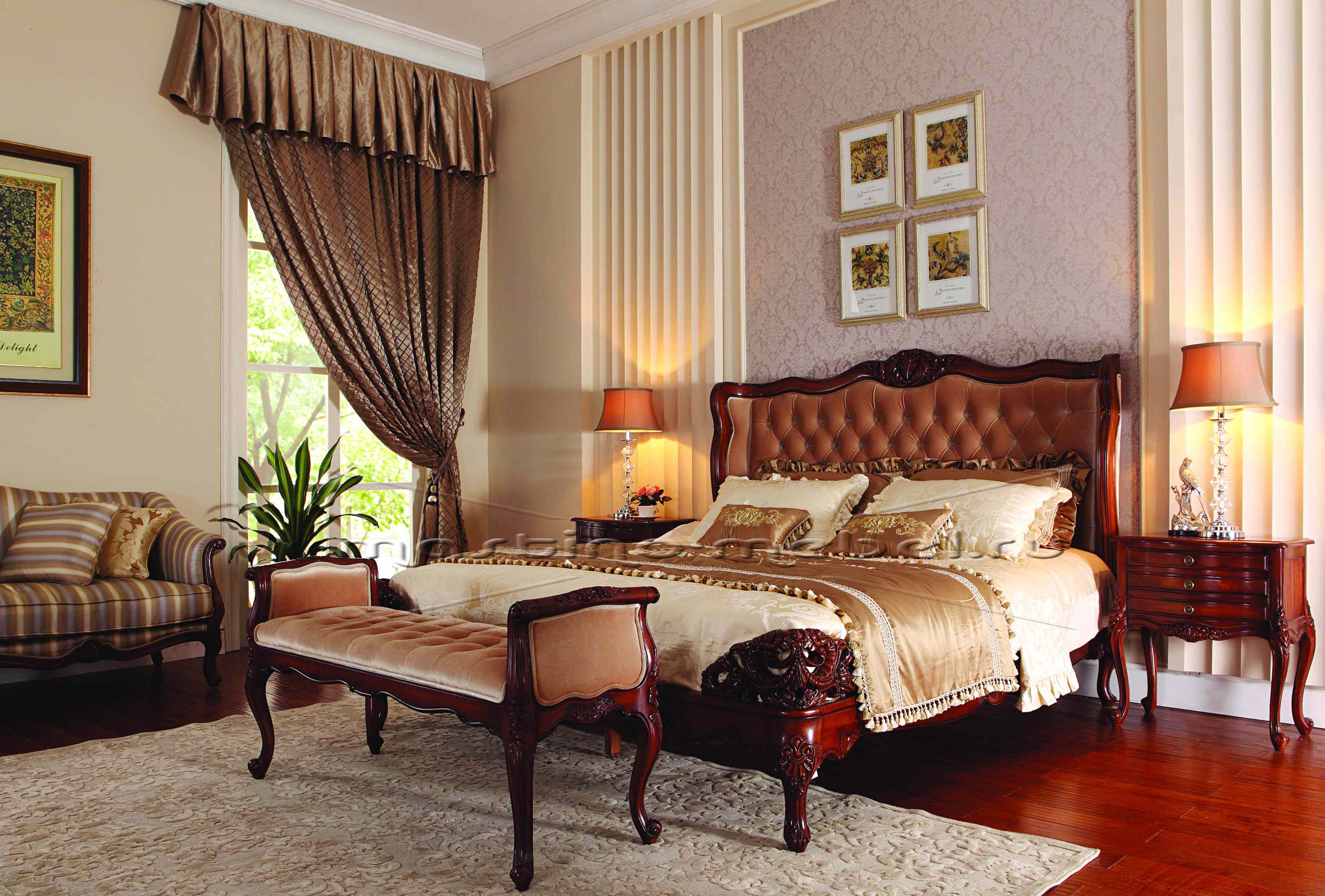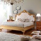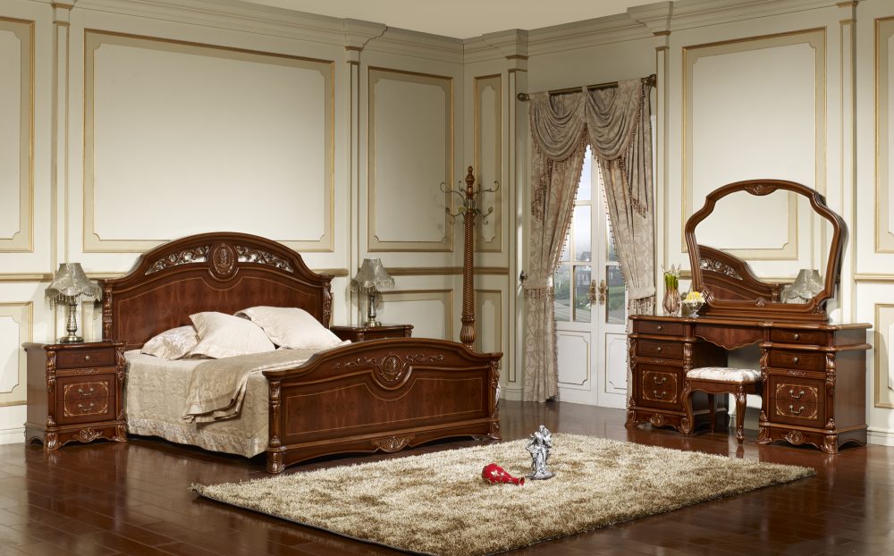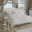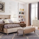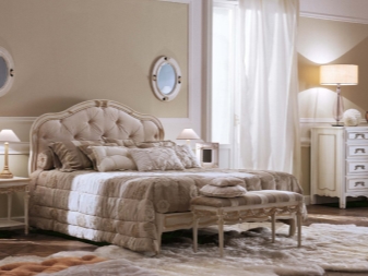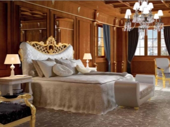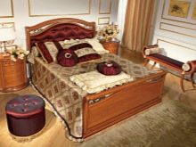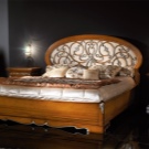 - Ein breites Doppelbett im klassischen Stil ist in der Regel an der Wand platziert, das Fenster beleuchtet das Bett von der Seite. Die Rückseite des Produkts kann mit Schnitzereien oder Polsterungen wie im Barockstil verziert werden.