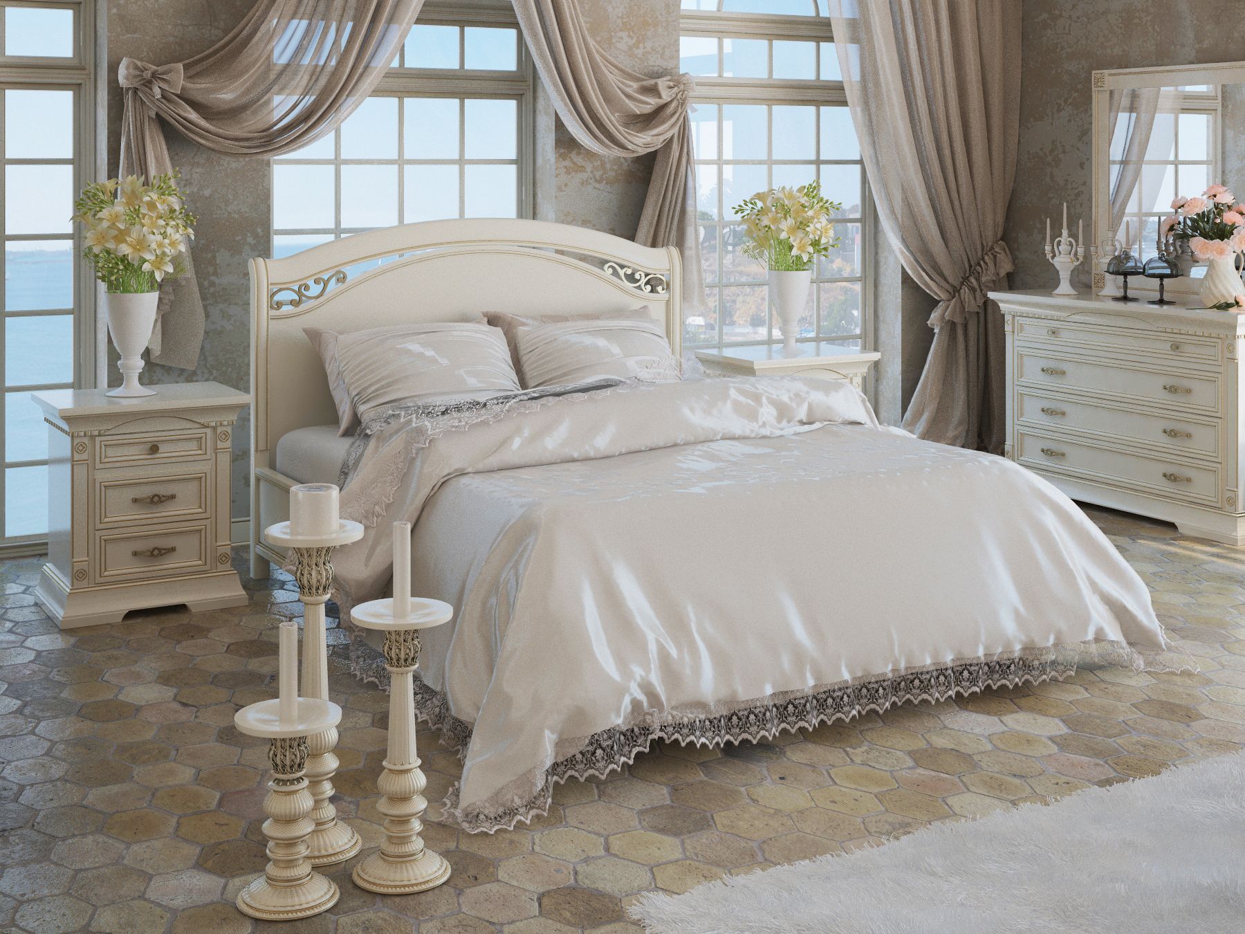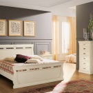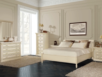 - Creme-, Milch- und Beigetöne des Holzes sind charakteristisch für das Schlafzimmer Venezia Bianco. Produkte dieser Marke sind dem modernen Stil nah, der Schwerpunkt liegt auf der Vorherrschaft von rechteckigen Formen in Möbeln, der Baum ist mit exquisiten Schnitzereien verziert.