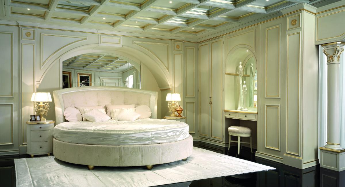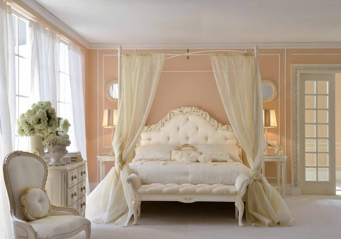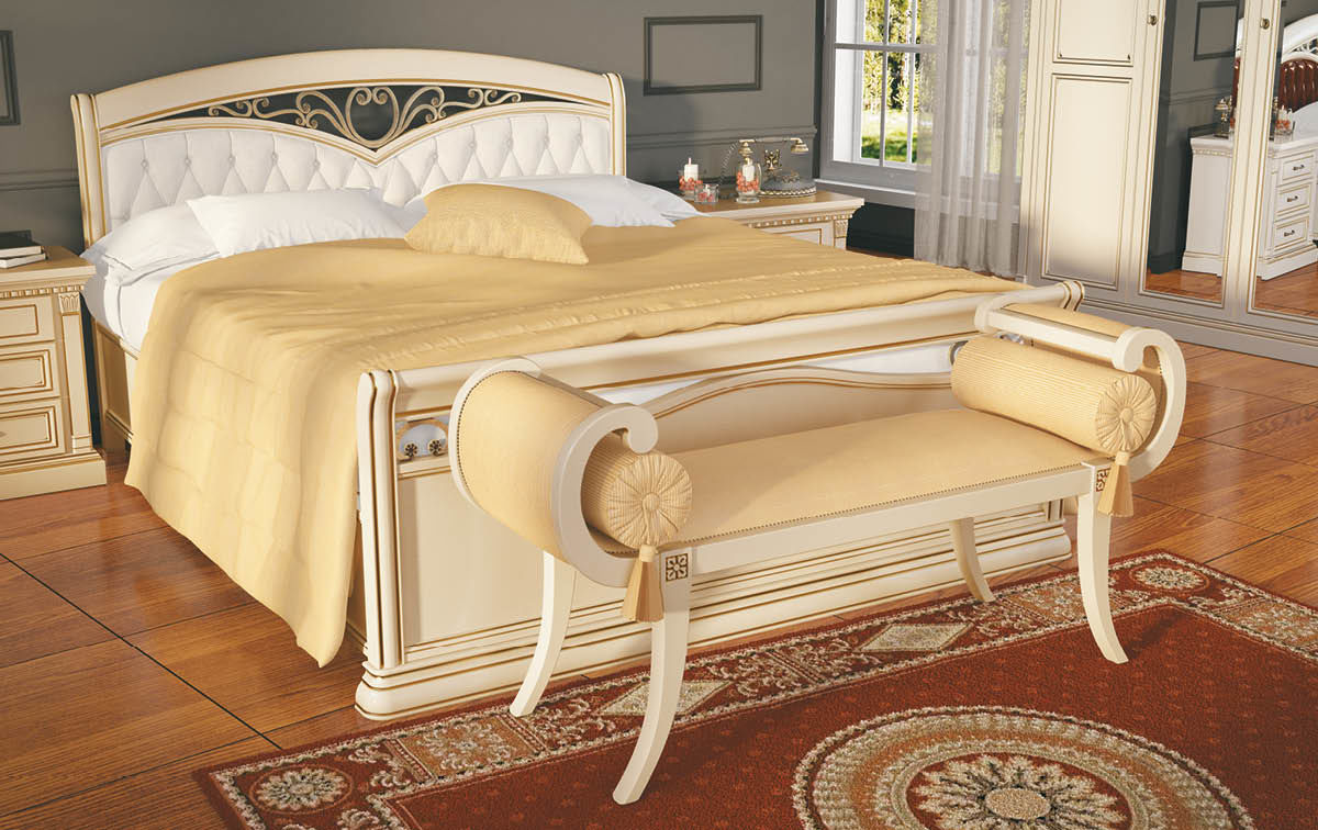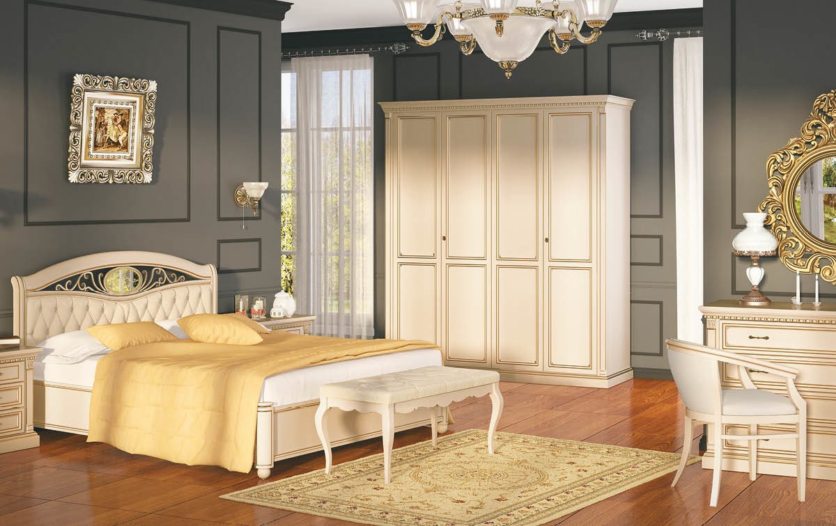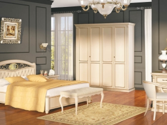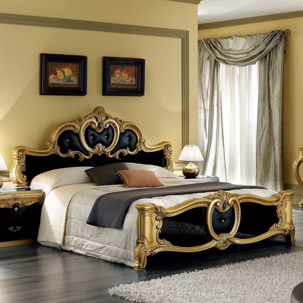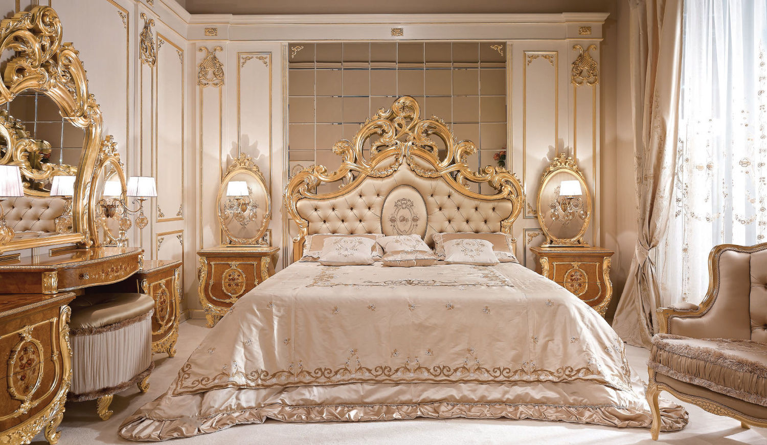 - Fans von Barock und Rokoko, im italienischen Konzept präsentiert, wie die Schlafzimmer Laccato mit ihrem inhärenten Prunk, Fülle von Goldschmuck auf Holz und hellen Farben, die die Möbeldimensionen geben.