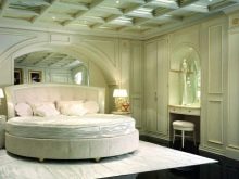 - Ein wesentlicher Bestandteil des Schlafzimmers sind Nachttische. Je nach allgemeinen geometrischen Themen können sie halbrund oder quadratisch sein, mit geschnitzten Mustern und Details aus anderen Materialien verziert sein.