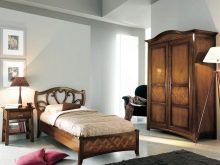 - Nostalgie-Headsets sind in verschiedenen Brauntönen erhältlich. Möbelstücke zeichnen sich durch ihre lange Form in der Vertikalen aus. Die Rückseite der Betten ist ziemlich hoch, einige Produkte haben Polstermöbel. Die Modelle sind mit einem Hebemechanismus ausgestattet, der eine Schublade zur Aufbewahrung von Bettwäsche öffnet. Schränke haben eine ziemlich beeindruckende Größe und implizieren hohe Decken im Raum.