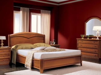 - Das Set aus Holzschlafzimmer-Set kann manchmal eine ziemlich große Anzahl von Möbelstücken enthalten. Aber ihre Anzahl kann abhängig von der Fläche und dem Layout des Raums reduziert werden, so dass nur die Hauptelemente übrig bleiben.