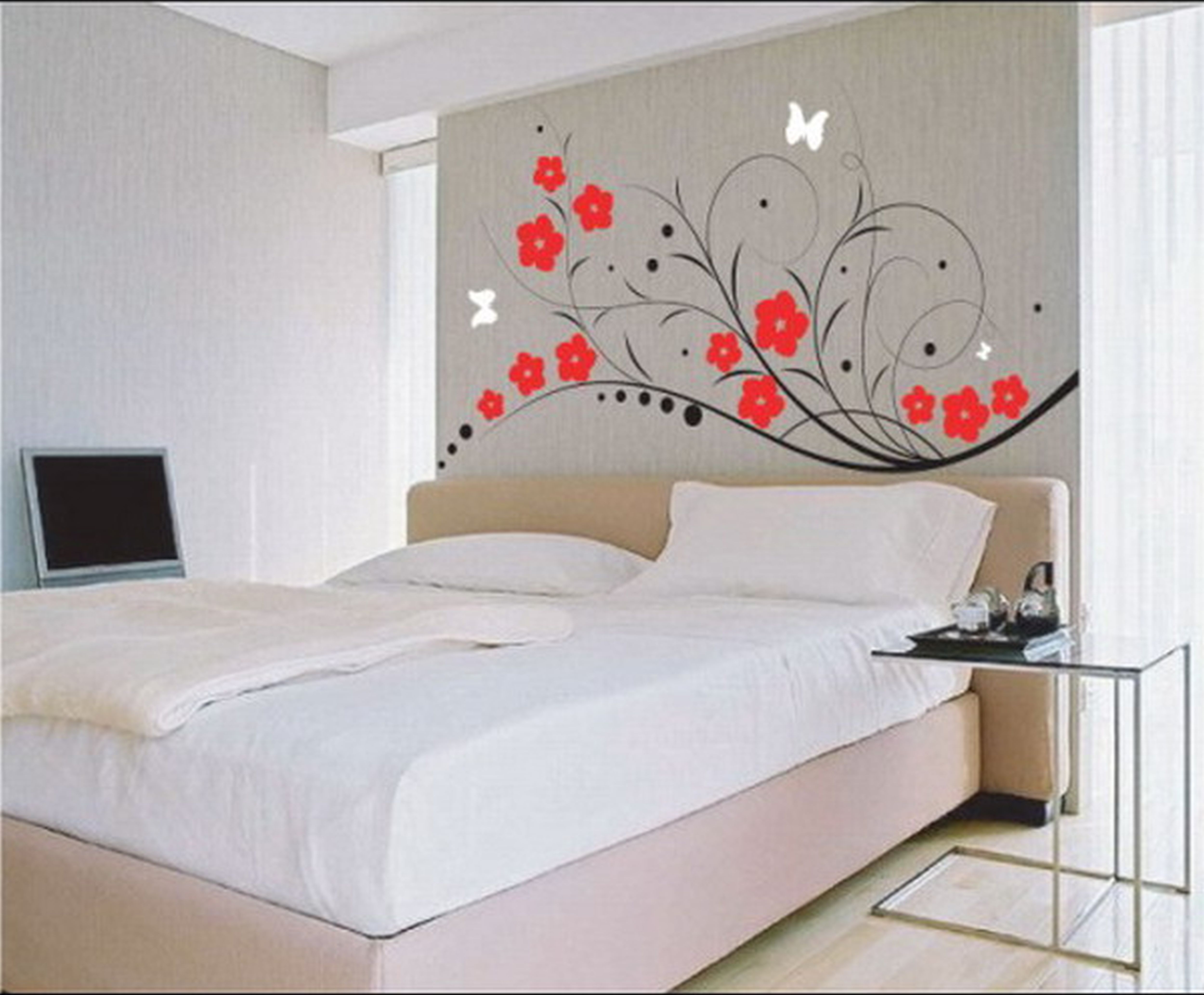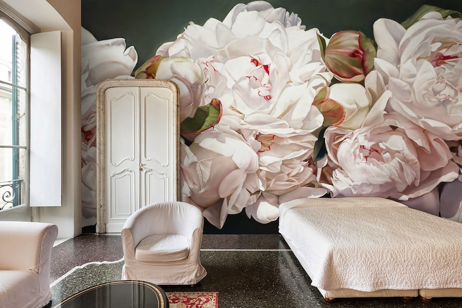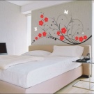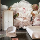 - rote Pfingstrosen, Rosen und Mohn schaffen eine Atmosphäre der Liebe, des Lebens und der Farben, symbolisieren Glück, aber erfordern die Wiederholung dieser Farbe in anderen Elementen des Dekors. Passt in das Schlafzimmer der Liebenden;