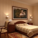 In der Praxis von Feng Shui wird nicht empfohlen, ein Bild über dem Bett zu hängen. Es wird angenommen, dass es unnötigerweise die Energieflüsse auf sich selbst konzentriert und dadurch deren Gleichgewicht stört. Es ist besser, es an der Wand gegenüber dem Bett zu platzieren, wo es immer vor Ihren Augen sein wird, ein positives senden. Über dem Nachttisch, links und rechts davon, können Sie zwei gleich große Stücke aufhängen, die das Grundstück wiedergeben. Wenn das Schlafzimmer eine Nische hat, dann wird das Bild darin gut aussehen. Bei einer großen Nischentiefe wird zusätzliche Beleuchtung benötigt.