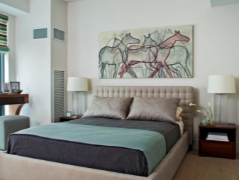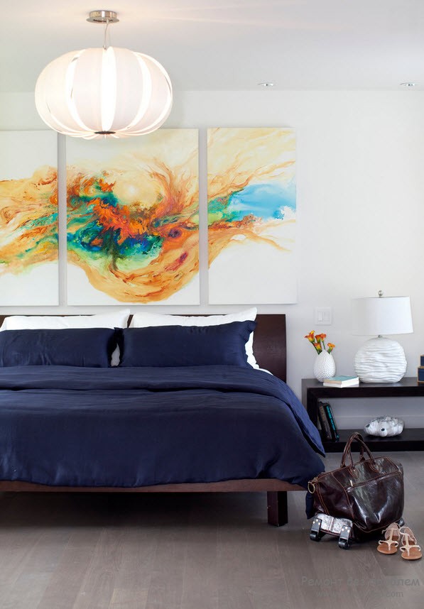 Früher wurden mehrschichtige Schwerölgemälde auf groben Leinwänden, die Menschen und Ereignisse darstellen, oder Reproduktionen von Gemälden berühmter Künstler verwendet, um Schlafzimmer zu dekorieren, aber mit der Zeit hat sich der Geschmack des modernen Menschen verändert, und das Bild wird jetzt für das Interieur ausgewählt und nicht umgekehrt.