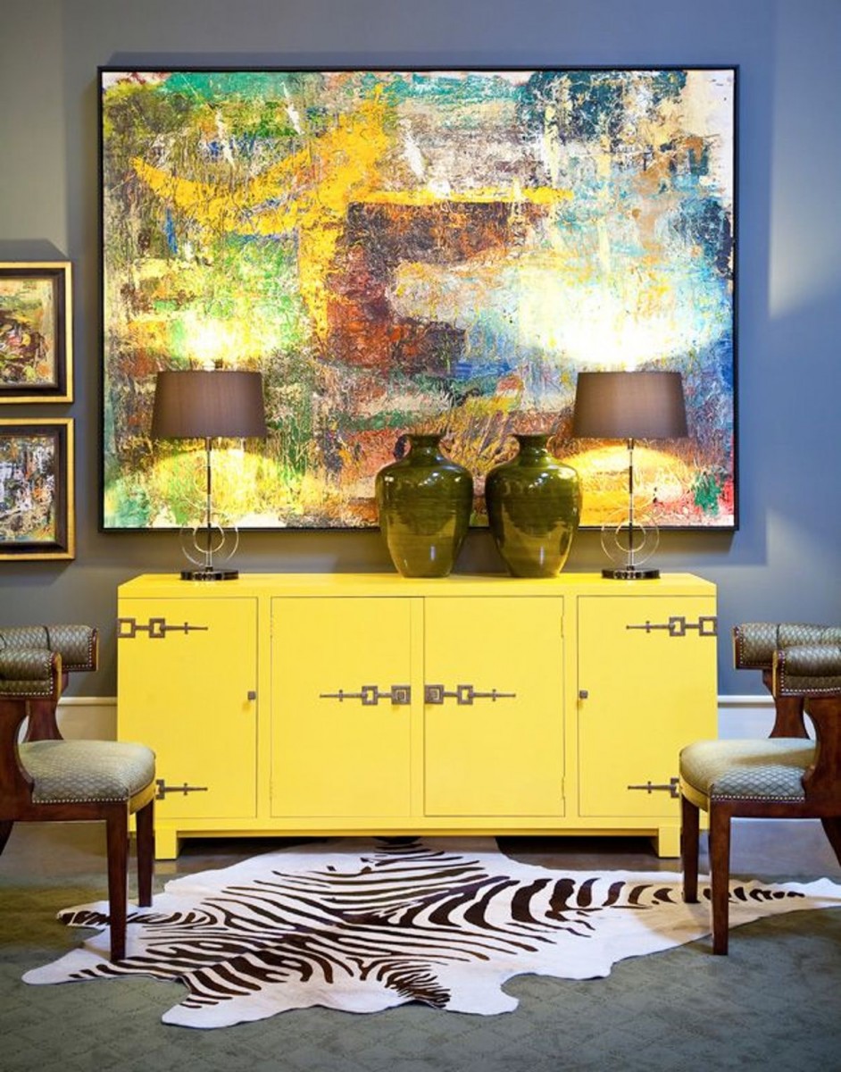 Der einfachste Weg, um ein Bild zu wählen, ist in Farbe, so dass es in der gleichen Farbgebung mit dem Rest des Dekors, Tapeten und Textilien ist.