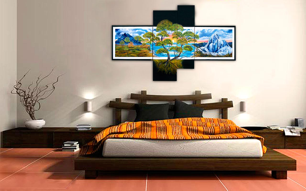 - wenn es im Schlafzimmer viele Leinwände mit verschiedenen Motiven gibtdann ist ihre Energie gemischt und es kann zu einem Ungleichgewicht kommen, daher ist es besser, sich an eine Handlung zu halten. Wenn es mehrere davon gibt, sollten die Bilder so ausgewählt werden, dass zwischen ihren Bedeutungen kein Widerspruch besteht.