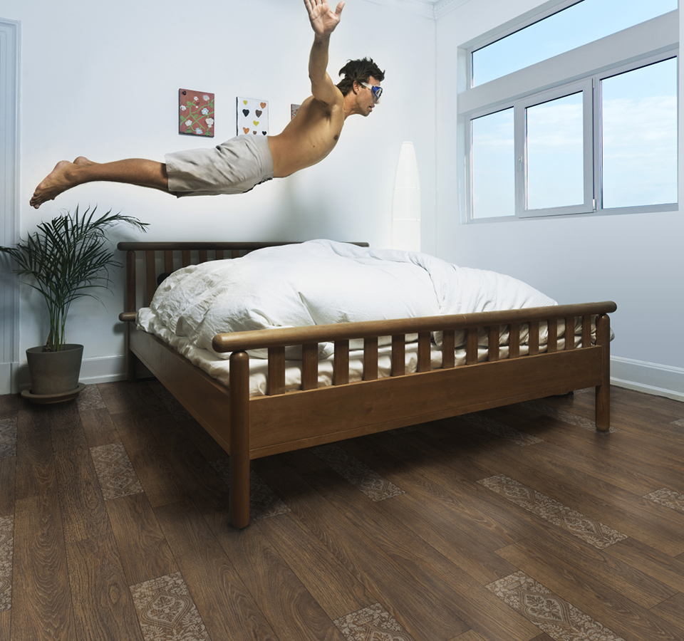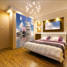 - Für ein Schlafzimmer mit einer Fläche von weniger als 25 Quadraten ist es nicht notwendig, die Beschichtung zu kleben. Es ist notwendig, die Streifen in dem Bild entsprechend der Position der Wände auszurichten.Wenn Linoleum Parkett oder Fliesen nachahmt.