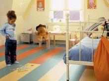 Semi-kommerzielle Ansicht, vielleicht die am besten geeignete. Meistens hat es eine originale Farbe, ähnlich wie Parkett oder Fliesen, oder es kann völlig monoton sein. Einige Modelle von semikommerziellem Linoleum verfügen über eine Basisisolierung, die es ermöglicht, den Boden selbst im ersten Stock eines Gebäudes zu erwärmen, ohne zusätzliche Ausrüstung zu installieren.