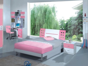 - Graues Linoleum wird helfen, das Innere des Schlafzimmers für ein Mädchen zu unterstützen, zumal grau und rosa eine großartige Kombination sind.