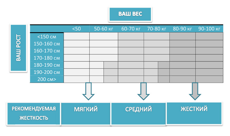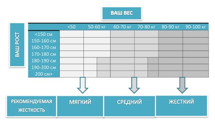 - Grad der Starrheit. Es ist wichtig zu wissen, dass weiche Produkte für Personen mit einem Gewicht von nicht mehr als 50 kg geeignet sind, mittlere - für Personen mit einem Gewicht von bis zu 90 kg sowie für Personen, die Probleme mit der Brustwirbelsäule haben.Ein Ausdruck ist notwendig für Kinder und Menschen mit viel Übergewicht und für alle, die Probleme mit dem oberen Teil der Wirbelsäule haben.