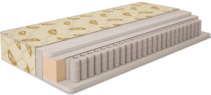 - Design-Funktionen. Kann Frühling oder Springless sein. Die Grundlage der Feder kann aus einem Block "Bonnel" (kontinuierliches Weben von Stahlfedern) bestehen, der längst ein Klassiker oder aus einem Block von unabhängigen Spiralen geworden ist. Letztere haben die größte orthopädische Wirkung. Springless eignet sich für Menschen, die sogar übergewichtig sind und als die langlebigsten gelten. aber haben die größte orthopädische Wirkung.