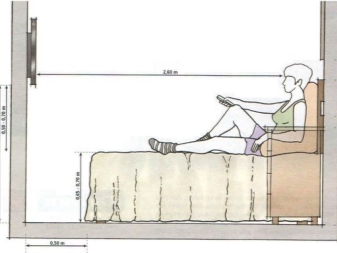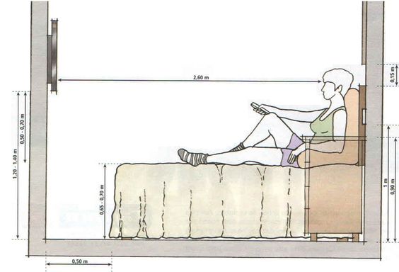 Um den Standort zu bestimmen, müssen Sie auf einem Sofa oder Bett in einem Schlafzimmer in einer komfortablen und vertrauten Position liegen. Jetzt muss bestimmt werden, an welcher Wand der Fernseher montiert werden soll, damit es bequem und bequem zu sehen ist.