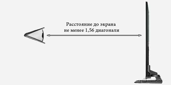 Der Abstand von den Augen zum LCD-TV sollte nicht weniger als die Summe seiner zwei Diagonalen und vom Plasma-Monitor zu den Augen sein - nicht weniger als das Produkt seiner Diagonale und der Zahl 3.