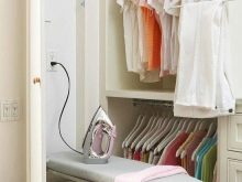 Die Höhe der Befestigung dieses Designs variiert nur nach Ihren Bedürfnissen. Der Standardwert beträgt 100-120 cm vom Boden. Es ist wünschenswert, sich auf die Abmessungen des Bügeltisches oder eines anderen für diese Fläche vorgesehenen Bereichs zu konzentrieren.