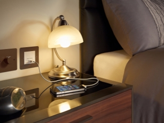 Nachttische sind oft im klassischen Design moderner Schlafzimmer vorhanden. Sie werden verwendet, um sie auf verschiedenen Haushaltsgeräten, Zeitungen, Zeitschriften und anderen ähnlichen Merkmalen zu positionieren. Um diesen Raum zu optimieren, ist es ratsam, zwei Steckdosen neben dem Nachttisch zu installieren.Der Abstand von der Möbeloberfläche zu diesem Attribut sollte nicht weniger als 15 cm betragen.Es sollte beachtet werden, dass, wenn das Bett doppelt ist, zwei solche Eintrittspunkte vorhanden sein sollten. Ihre korrekte Platzierung ist auf jeder Seite des Bettes, um den Zugang zu ihnen für die Menschen zu optimieren.