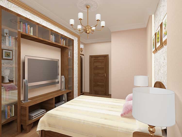 Geräte dieses Typs werden zunehmend im Schlafzimmer verwendet. Wenn schließlich das Design die Installation des Fernsehers voraussetzt, empfehlen Experten, einen ganzen Block von Steckdosen von 5 Eingängen zu installieren. Solche Designs werden für Geräte verwendet, die durch Audiogeräte, einen Tuner oder andere Hilfsgeräte ergänzt werden.