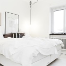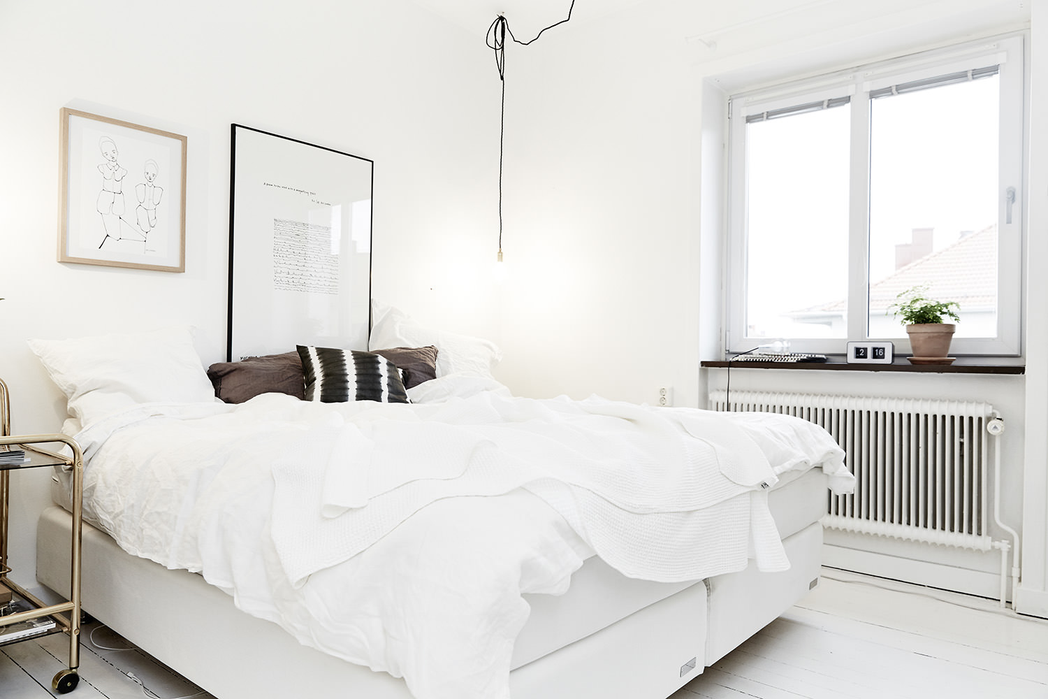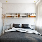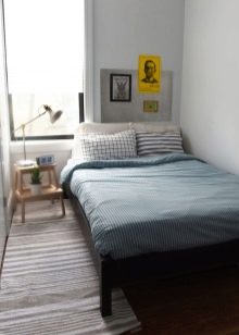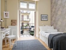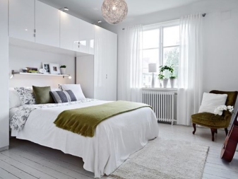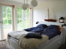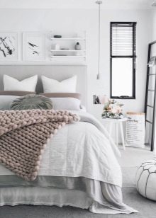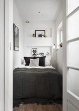 - Skandinavischer Stil - füllen Sie das kleine Schlafzimmer mit Coolness und Transparenz. Weiß wird für die Dekoration verwendet, Akzente können in hellbraunen oder blau-grauen Farbtönen hergestellt werden. Die ganze Atmosphäre sollte Bergen ähneln, die mit Schnee und eisigen Flüssen bedeckt sind.