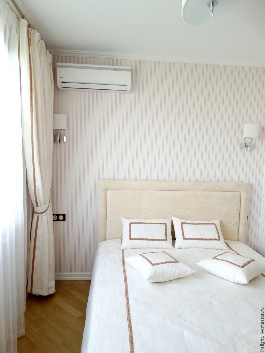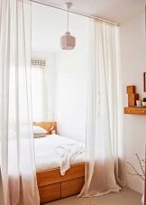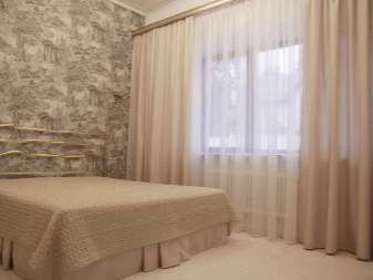 Vorhänge sollten aus leichten Naturmaterialien hergestellt werden. - Dies ist beispielsweise Seide oder Leinen. Wählen Sie ein klassisches Design, ohne Vorhänge. Licht Vorhänge aus Tüll oder Organza werden schön aussehen.