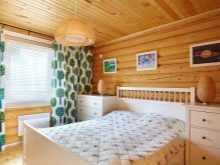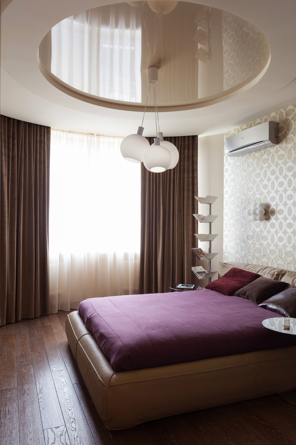Das Schlafzimmer bietet auch eine abgeschiedene und sogar intime Atmosphäre, wo eine Person nach einem anstrengenden Arbeitstag entspannen und entspannen kann.