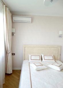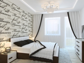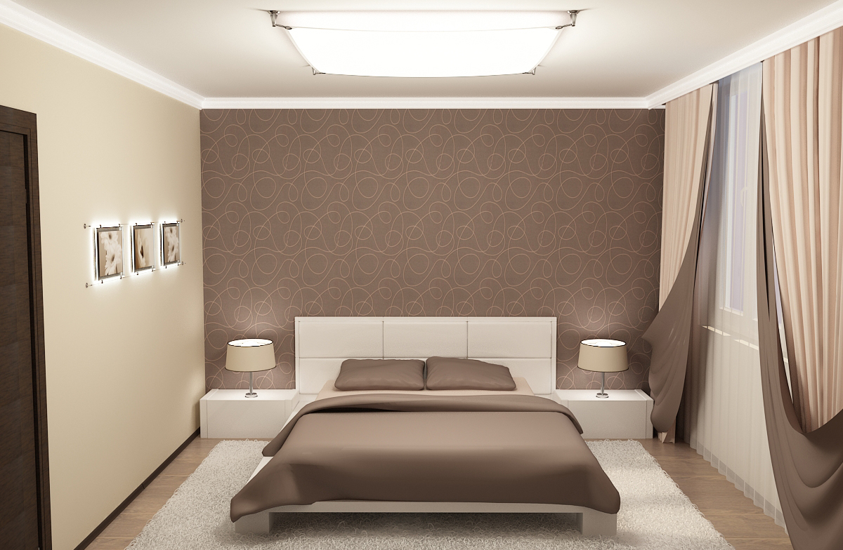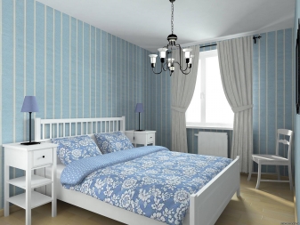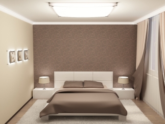 Bitte beachten Sie, dass eine bestimmte Kombination von Tapeten helfen kann, die Proportionen eines kleinen Bereichs zu verbessern. Zum Beispiel, für einen schmalen Raum an einer Wand, kleben Sie einfarbige Tapeten, und auf der anderen - gestreift, Kreis (Sie können andere geometrische Elemente auswählen). Solch ein Trick wird Zonen in Zonen erlauben und das Schlafzimmer wird nicht wie ein Tunnel sein.