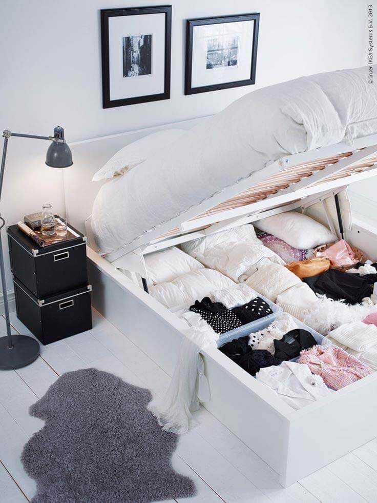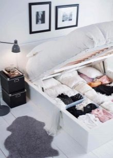 - Wähle ein Bett mit vykatny Kästen oder einer Kiste für Leinen.
