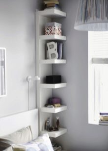 - Schmale Regale wird nicht an der Wand stehen, und Sie werden einen Platz für die notwendigen Details haben.