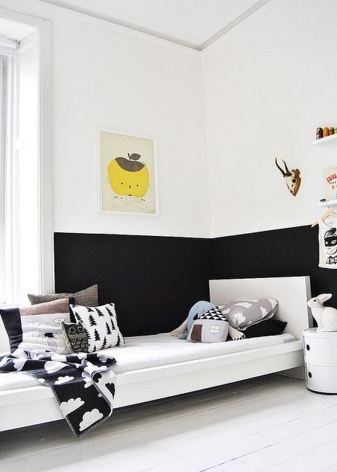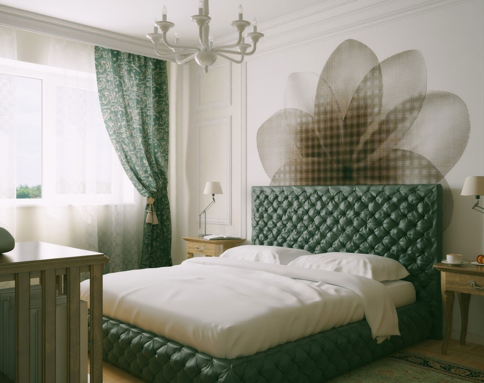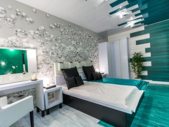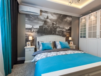 Als Ausnahme Sie können die Wand mit Akzentwand schmückenwelches sich am Kopfende des Bettes befindet. Sie können ein Stadtbild, ein Bild von Blumen, Tieren, eine Abstraktion wählen. Die Hauptsache - die sehr hellen Optionen aufzugeben.