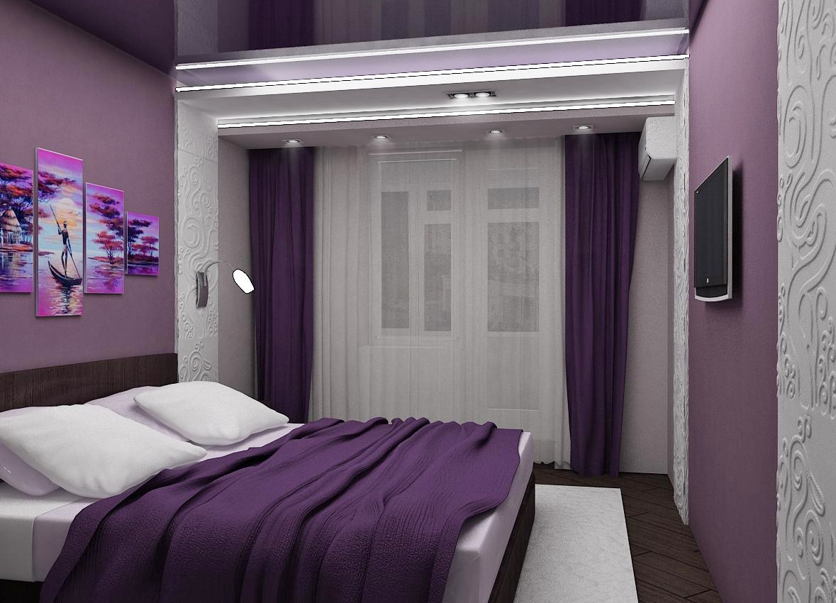- Der sanfte Farbton von Purpur wird Ihnen erlauben, sich zu entspannen und zu beruhigen. Es passt gut zu Weiß, Beige und Cremetönen und kann auch eine ausgezeichnete Ergänzung zu den Elementen sein, die in grün, gelb, rosa Farben gemacht sind.