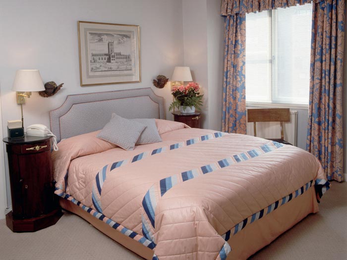 Bettdecken, Kissen und Polster sollten der Farbe und Beschaffenheit der Vorhänge entsprechen., als ob es das Innere vereinte und ihm eine vollständige und vollständige Erscheinung verlieh.