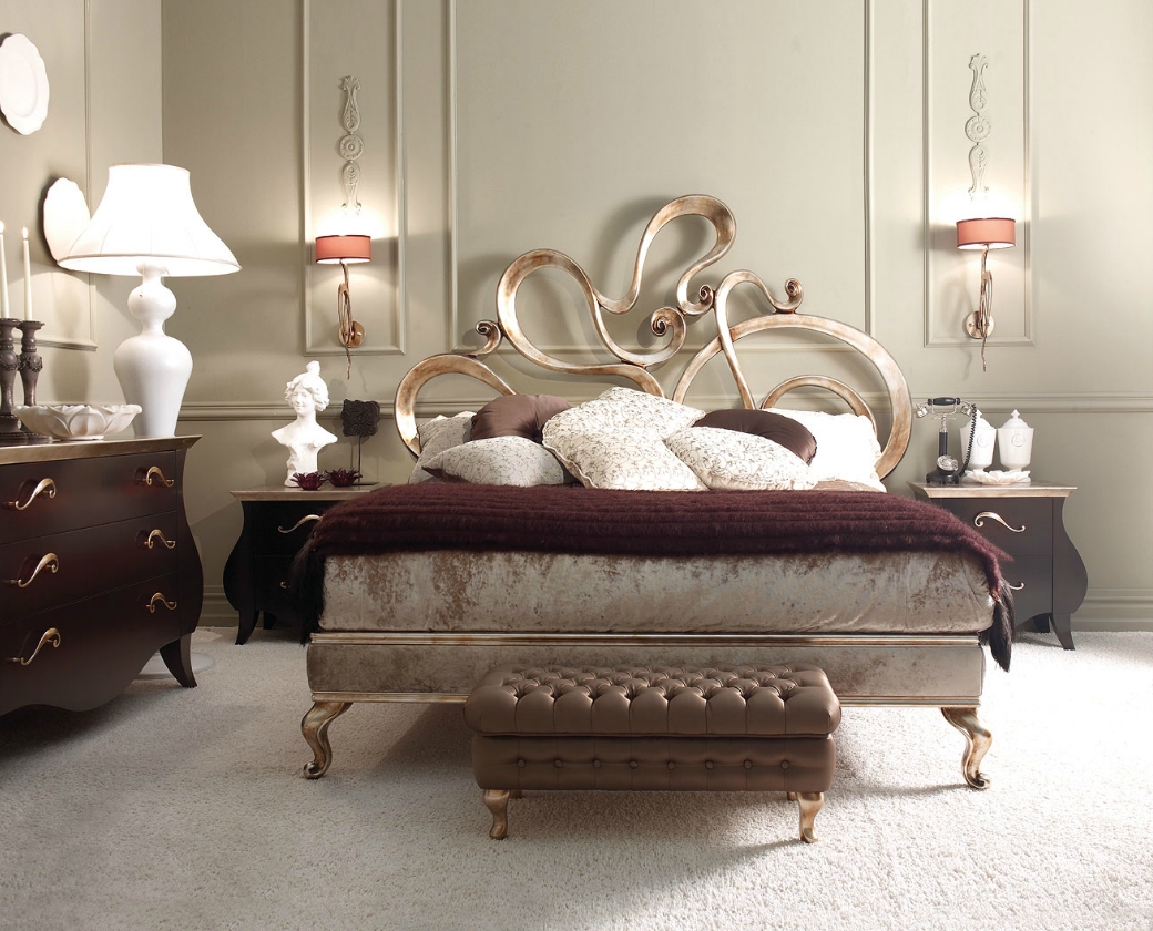 Stoppen Sie Ihre Wahl auf geschnitzten Möbelnaus massivem Holz und hat elegante Linien, abgerundete Ecken oder geschmiedete Elemente.