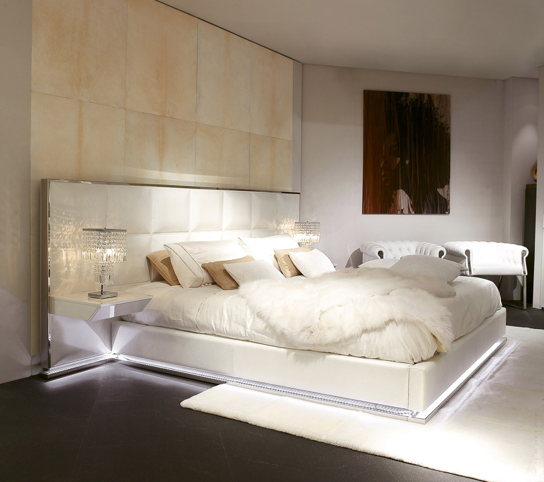 - Im schneeweißen Schlafzimmer schlafen Sie schneller ein. Wenn Sie eine romantische Stimmung bekommen möchten, dann verwenden Sie Farbbeleuchtung.