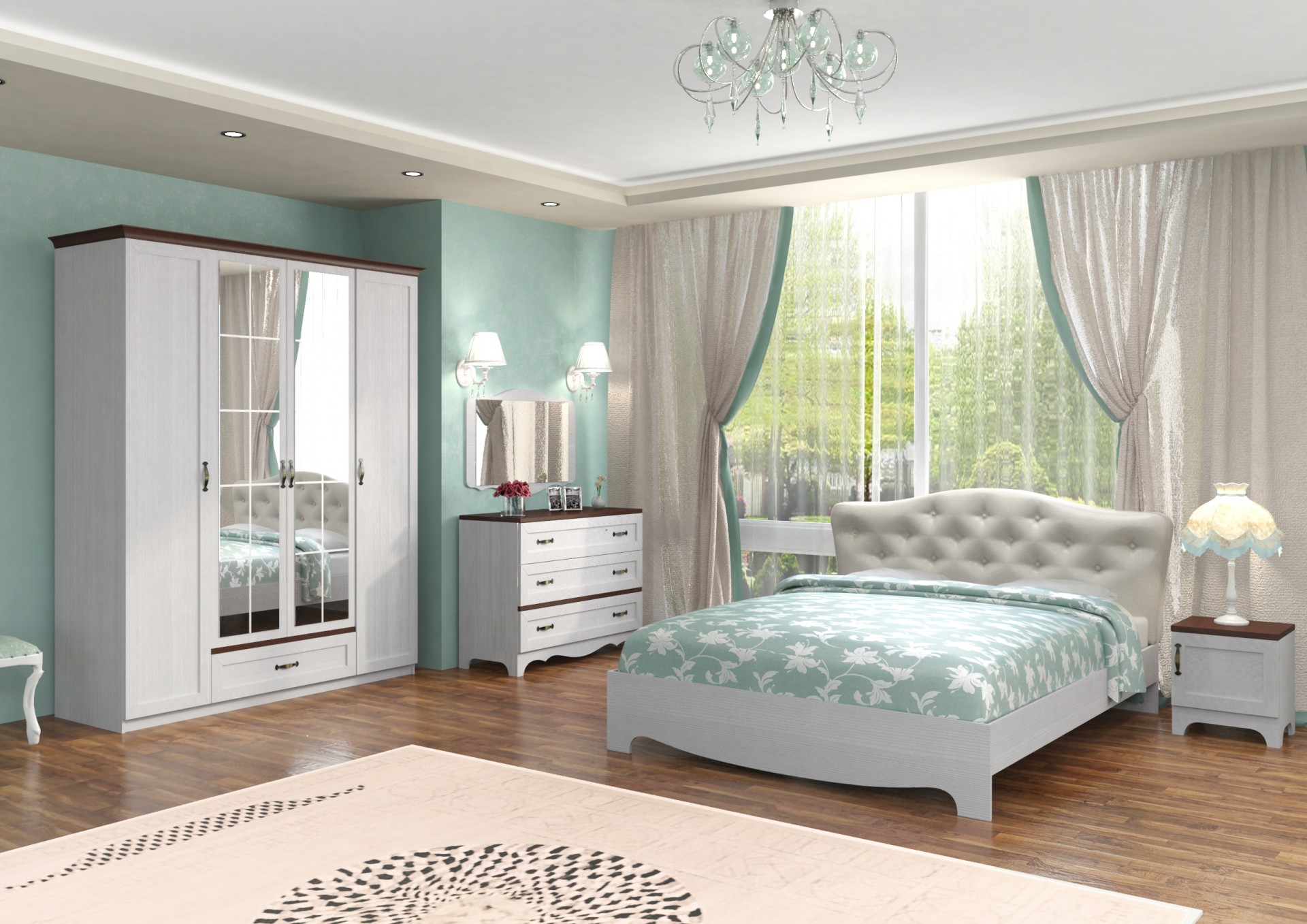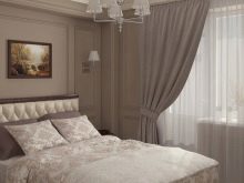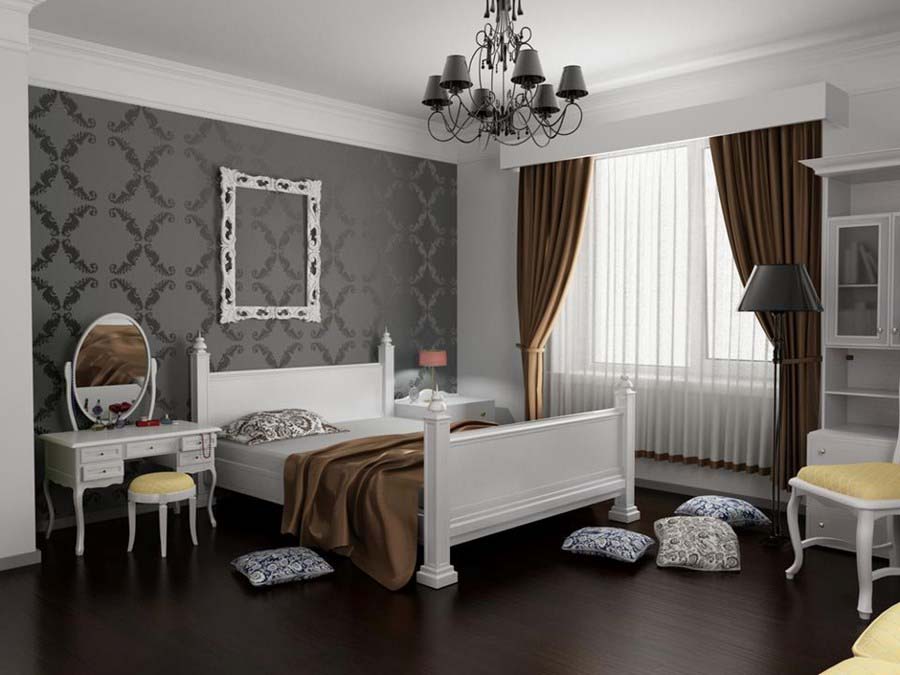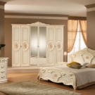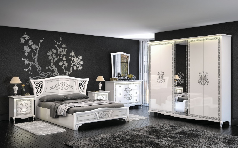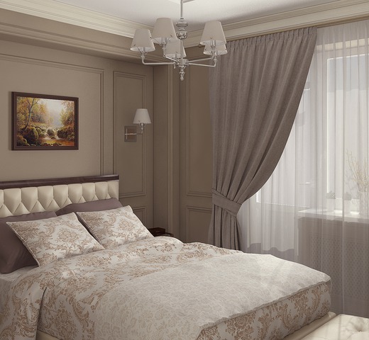 Eine weitere interessante Möglichkeit, ein Schlafzimmer zu dekorieren, ist die Verwendung klassischer Motive. Diese Designoption ist gut, weil sie helle Farben und Möbel im alten Stil kombiniert.