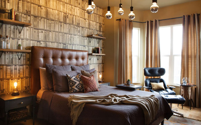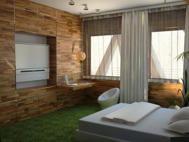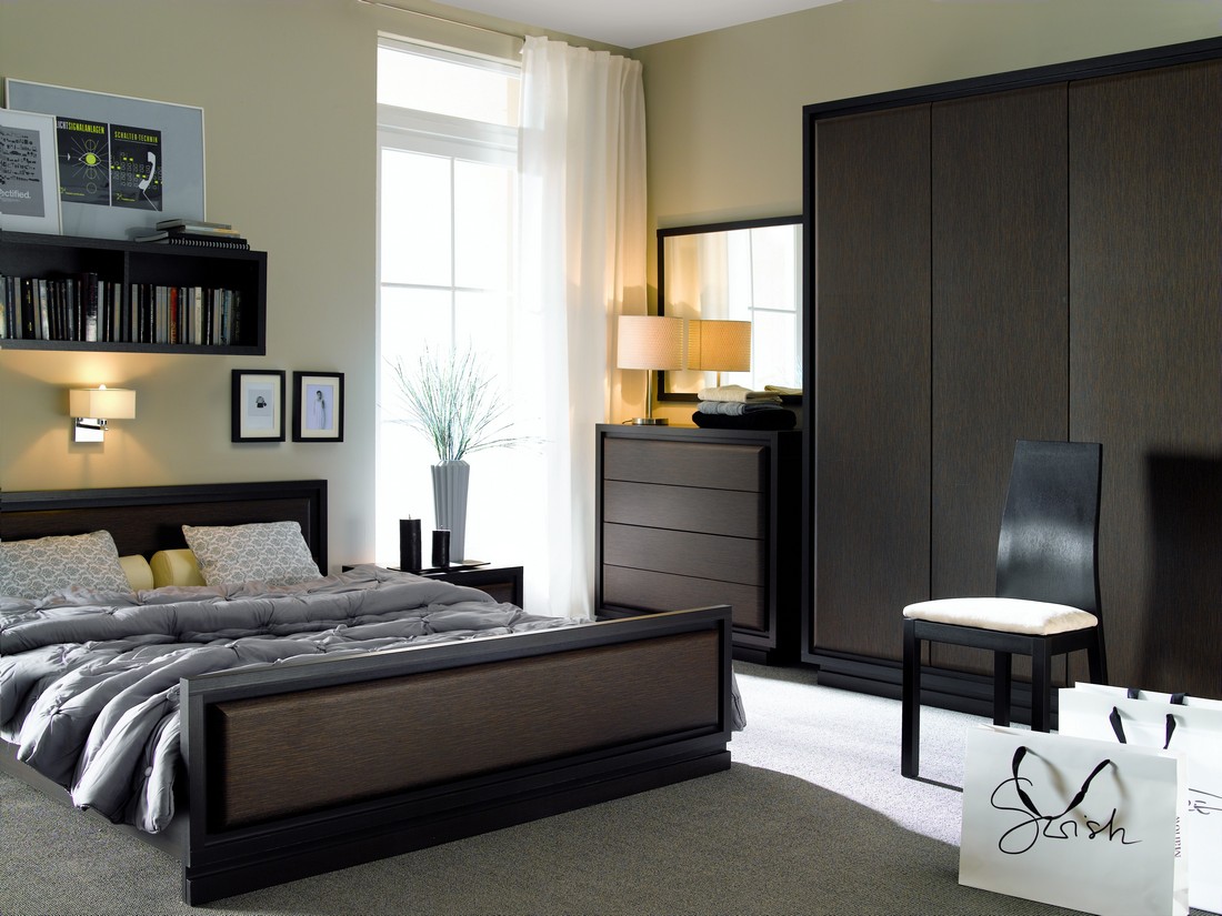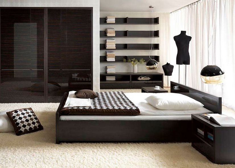 - Im Schlafzimmer für Junggesellen Es lohnt sich, einen anderen Ansatz zu verwenden. Stylisten empfehlen die Zuweisung eines speziellen Platzes als Arbeitsbereich. Dies gilt für Männer, die zu Hause arbeiten.