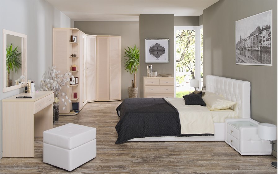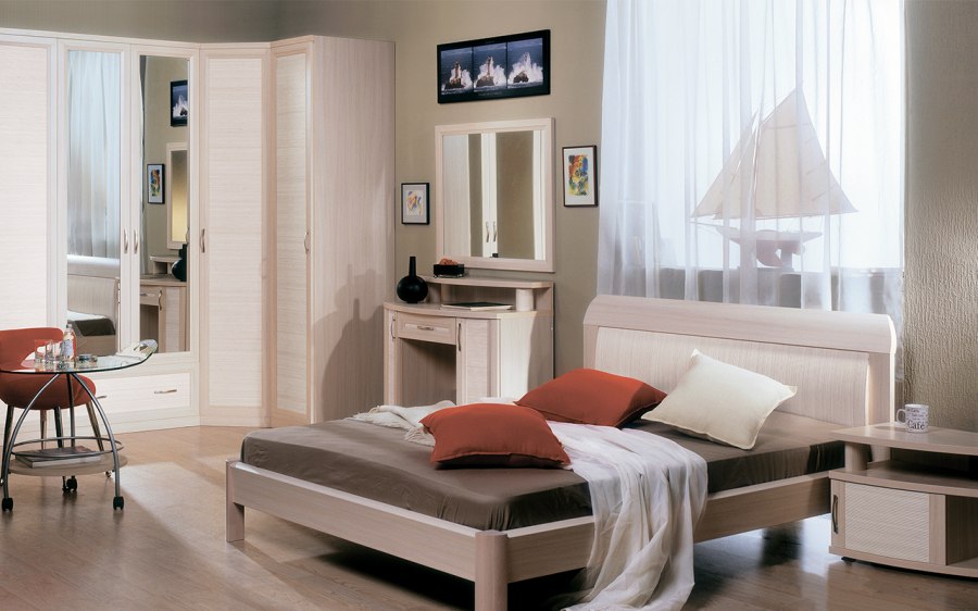 Nachdem Sie Reparaturen im Raum durchgeführt haben, lohnt es sich, zu der Anordnung der Möbel darin zu wechseln. Unabhängig davon, ob Sie ein großes Schlafzimmer oder ein sehr kleines Schlafzimmer haben, sollte es immer noch eine gewisse Menge an Möbeln enthalten. Das Minimum eines Möbelsets ist ein Kleiderschrank, ein Bett und eine Kommode. Dann können Sie alles nach Bedarf wieder kaufen, je nachdem, was Sie benötigen.