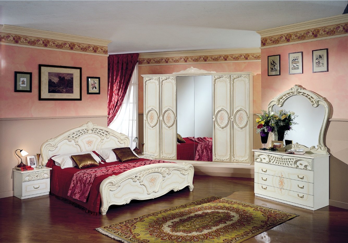 Möbel für ein solches Schlafzimmer sind oft mit Schnitzereien verziert und stehen auf schönen geschwungenen Beinen.Wenn es eine Gelegenheit gibt, dann können Sie den Raum mit Antiquitäten oder Antiquitäten dekorieren. Sie können sogar mit eigenen Händen als Antiquitäten stilisiert werden, zum Beispiel mit Farbe oder anderen stilistischen Methoden.