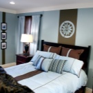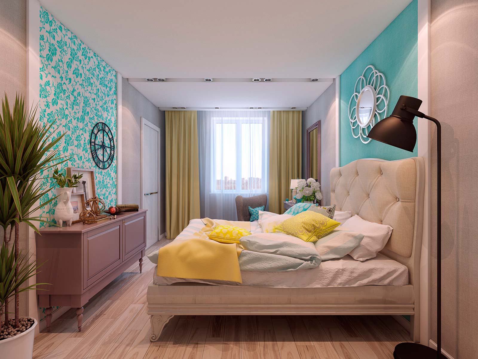 - Blau Die optimale Lösung für das Schlafzimmer, dessen Fenster nach Süden blicken. Es wird verwendet, um ein Zimmer im skandinavischen, nautischen oder klassischen Stil zu dekorieren.
