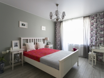 - Einfache Provence, Country Chebbi-Chic - aus diesen stilistischen Richtungen weht Romantik, Ruhe und Frieden. Graue Farbe wird das Innere des Schlafzimmers Eleganz und Eleganz hinzufügen, wird es harmonisch Frivolität und Ernst kombinieren.
