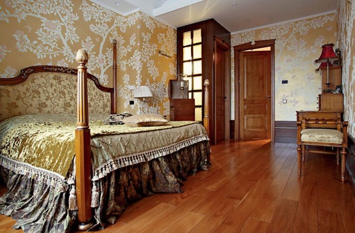 - Der Boden ist normalerweise mit Holz oder Parkett ausgekleidet. Sie können auch ihre Nachahmung verwenden.