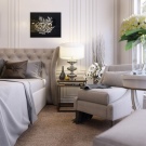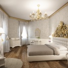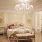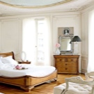 - Klassizismus ist die Verkörperung von Strenge und Harmonie. Es verbindet Luxus und Großartigkeit mit Ruhe und Komfort. Die Hauptsache für Klassizismus - hohe Decken und viel Platz.Daher sollte es im Schlafzimmer nicht viele Möbel und andere dekorative Elemente geben und der Raum sollte in funktionale Bereiche unterteilt werden. Bemerkenswerte Klassizismus Säulen, Bögen, Stuck, Kamine, Wandgemälde, beeindruckende Kronleuchter, alte Gemälde und reiche Spiegel. All dies ist notwendig, um ein Gefühl von Majestät und Eintauchen in eine andere Ära zu schaffen. Möbel im Klassizismus sollten aus Holz gefertigt sein, Armlehnen und Rücken sind mit Edelsteinen oder Goldmalereien verziert. Möbel müssen jedoch einen strengen Stil und klare Linien haben.