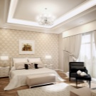 Die Decke im klassischen Stil sollte hoch genug sein, damit das Schlafzimmer wie ein Raum im Palast wirkt, der immer hohe Decken hat. Sie können es mit Stuck oder Rosette dekorieren, dekoriert mit einem majestätischen Kronleuchter. Besonders schön ist die Decke, die mit Fresken bemalt oder mit Caissons verziert ist.